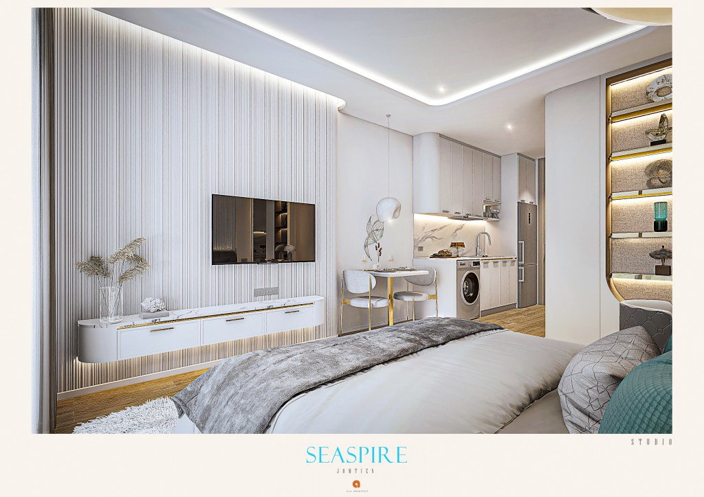 All apartments have luxury finishes, fully furnished, modern sanitary ware, appliances, fully equipped kitchen, air conditioning, ceiling lighting, finished bathroom, fire protection system, balcony. On request you can install a Jacuzzi on the balcony overlooking the sea