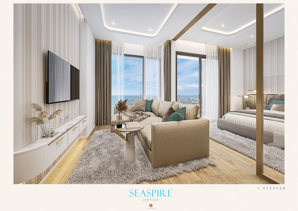 Buy an apartment in Pattaya by the sea in the project Sea Spire Jomtien. This is your chance to own a luxury apartment located on the beachfront 25 meters from Jomtien Beach. The project from the famous developer DUSIT GROUP — is one of the most reliable developers in Thailand with more than 15 years of experience. Seaspire condominium consists of two buildings: residential building — 49 floors and parking building — 7 floors with free parking spaces for 149 cars.
